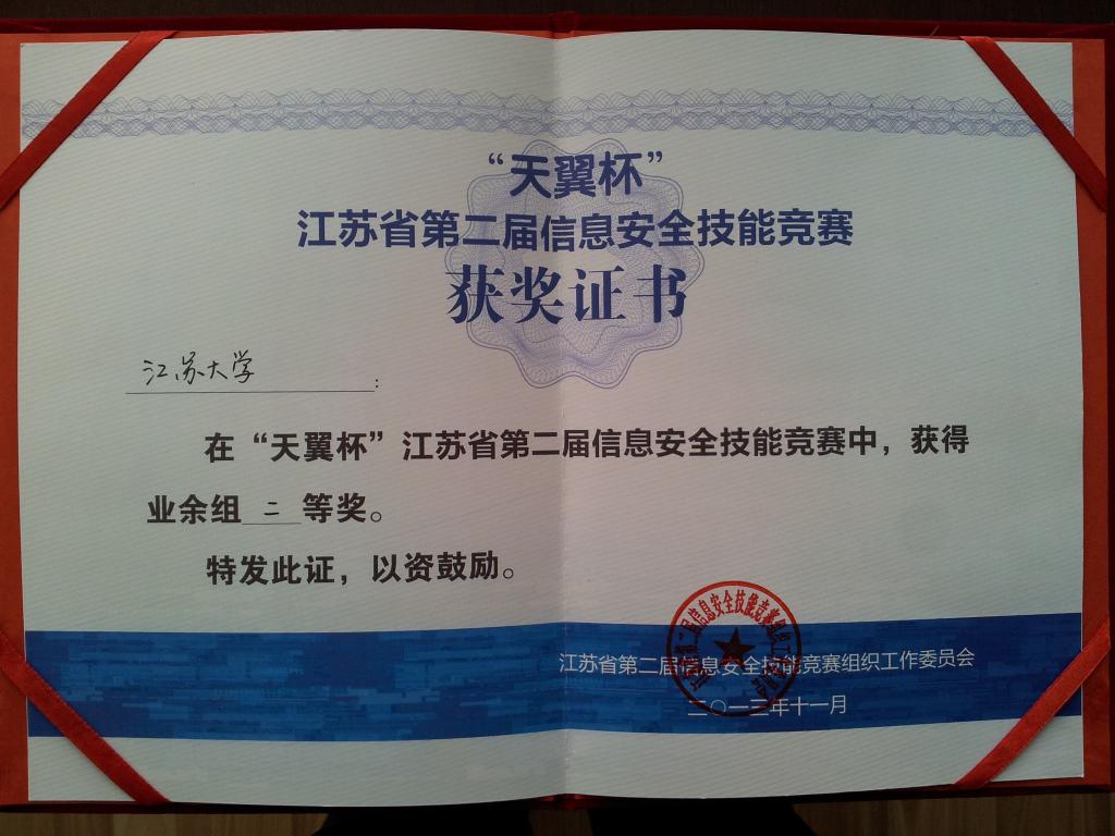 江苏省第二届信息安全技能竞赛二等奖